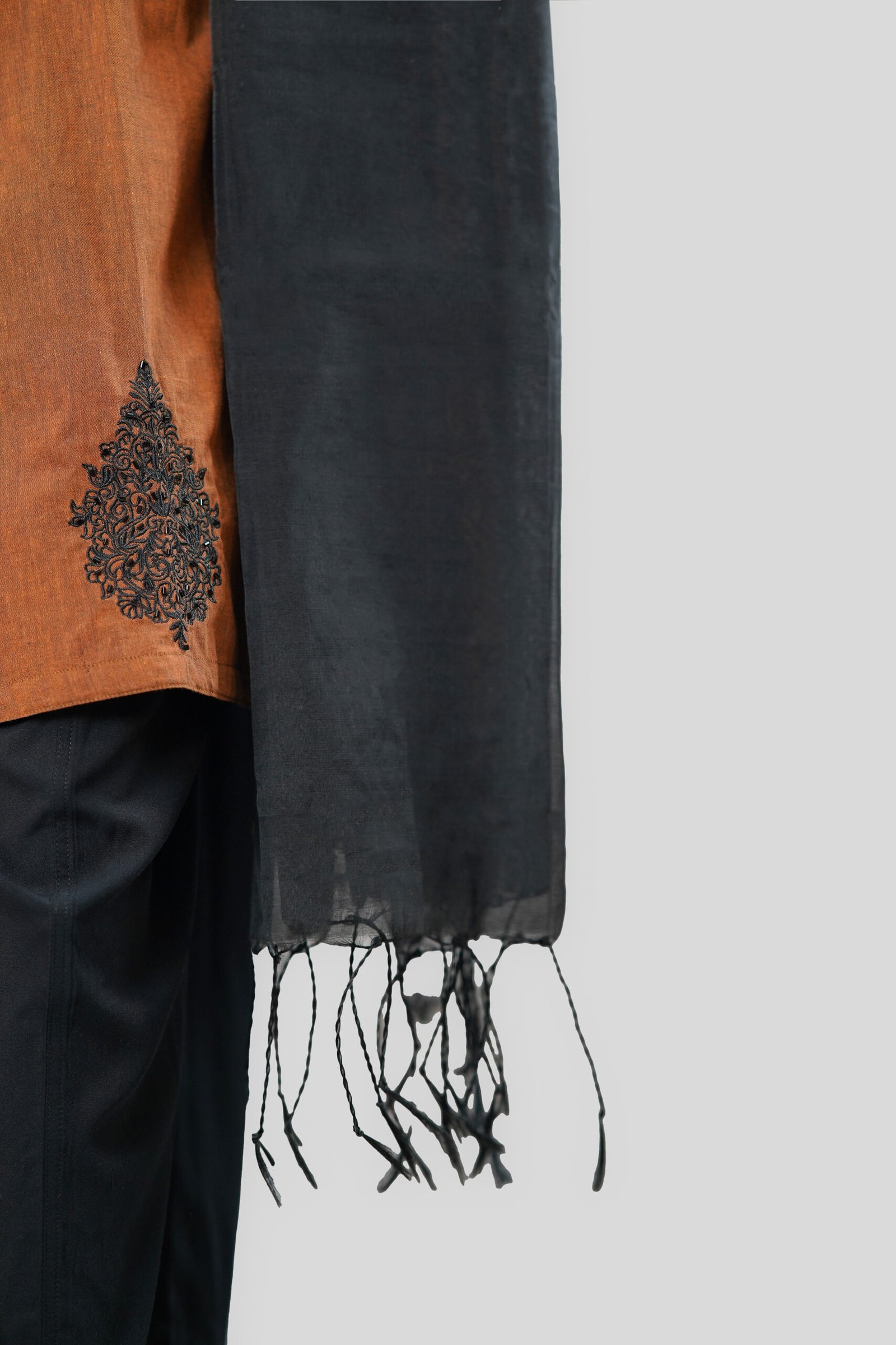 Color: Kamiz-Amber with Black Semi-Moslin Orna