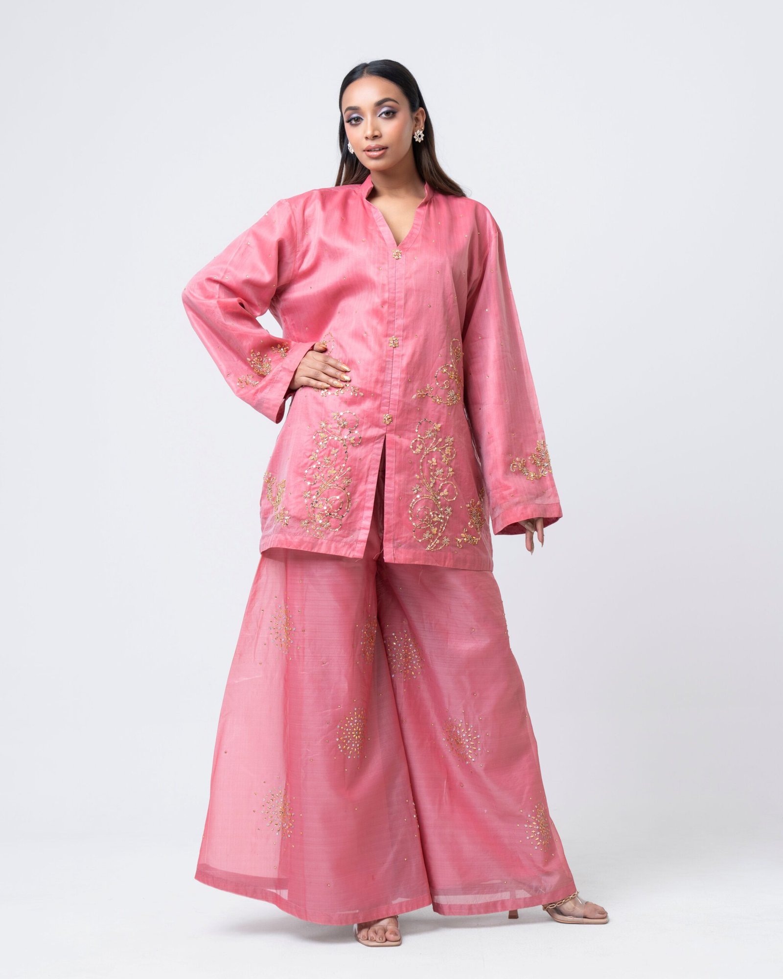 Home » Shop » Blush Pink Luxe Koti & Flared Pant Set