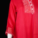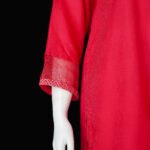 The kamiz features intricate high-quality embroidery on the neckline and cuffs, beautifully balanced by the semi-muslin orna and tailored linen design pants. The rich red hue adds a bold yet elegant touch, making it a must-have piece for women who love effortless class with a hint of glamour.