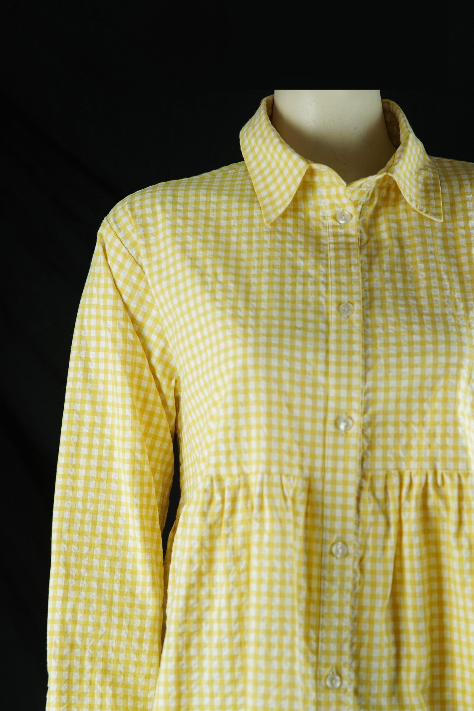 Bright, breezy, and effortlessly stylish — the Sunlit Check Tunic Dress is a perfect blend of comfort and charm. Made from soft 100% cotton, it features a delicate white and light yellow check pattern that adds a refreshing, youthful touch to any look.